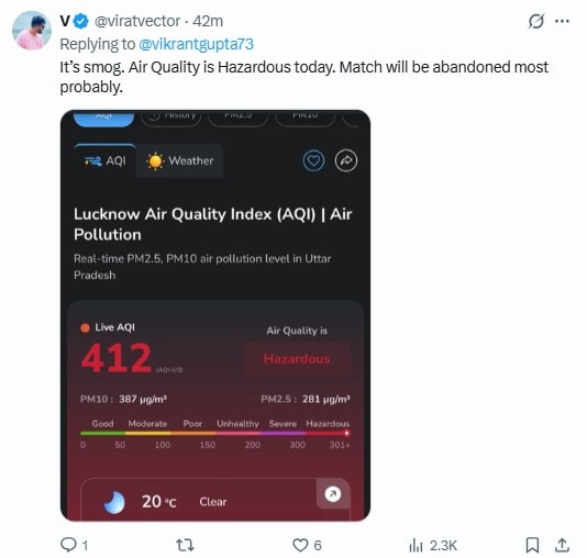IND vs SA 4th T20 Weather Updates: लखनऊ में एक्यूआई 418 पर पहुंचा