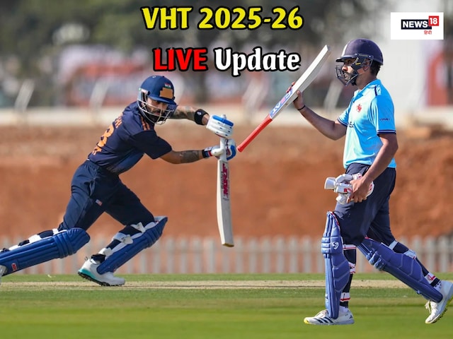 Vijay Hazare Trophy Live Match Update: नमस्ते, न्यूज 18 हिंदी क्रिकेट के लाइव ब्लॉग में आपका स्वागत है. विजय हजारे ट्रॉफी में आज होने वाले मुकाबलों में विराट कोहली और रोहित शर्मा का एक्शन देखने को मिलेगा. 24 दिसंबर को खेले गए मैच में इन दोनों बल्लेबाजों ने बेहतरीन शतकीय पारी खेली थी. वहीं 26 दिसंबर को विराट कोहली दिल्ली के लिए गुजरात के खिलाफ खेलेंगे, जबकि रोहित शर्मा का लाइव एक्शन मुंबई के लिए उत्तराखंड के खिलाफ देखने को मिलेगा. इसके अलावा आज होने वाले सभी मैचों से जुड़ी पल-पल का अपडेट यहां देख सकते हैं.