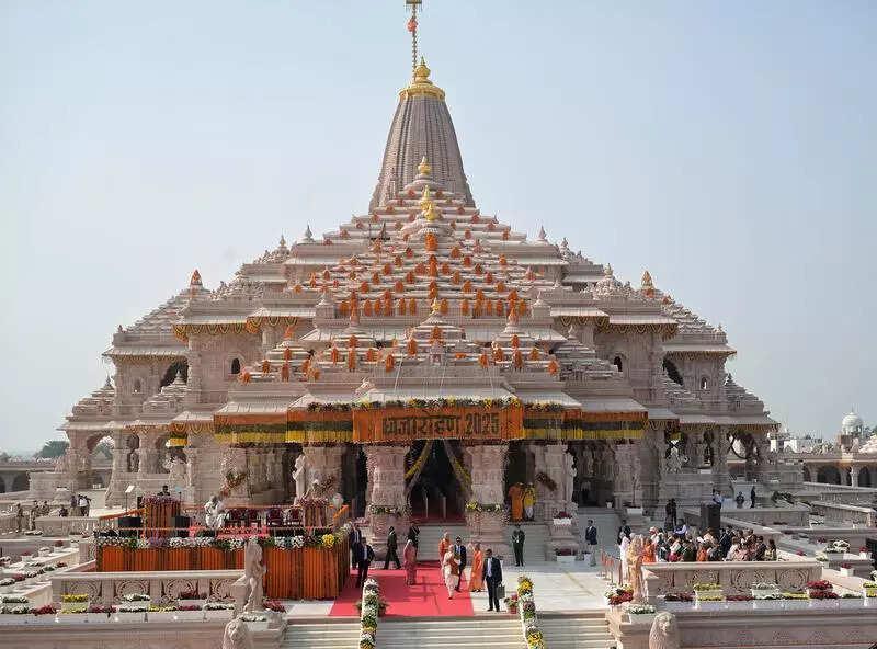 The state broadcaster would telecast the proceedings on television as they unfold at Ram temple from early Wednesday morning.Rajnath is expected to offer prayers to the idols of gods and goddesses that have been placed in the temples built over parkota wall and sapt mandap. A total of 14 temples have been constructed around Ram Lalla.Meanwhile, religious ceremonies were held at the Ram Temple with a lot of enthusiasm on Monday as part of the five-day long rituals that have been planned ahead of the second anniversary. The day commenced with prayers around the sacred fire (havan) and prayers at the yagyashala.Continuous discourses of Ramcharit Manas kept echoing in the background for the devotees. A group of women and men deputed by the temple trust took out a palki yatra in the temple and parts of the city, catering to the demand of local residents and shopkeepers who wanted to participate in the ceremonies.A two-dimensional Ram Lalla painting made in Thanjavur style was placed in the Ram temple compound on Monday. Bengaluru based artist Jayashree Phaneesh worked on the intricate painting for about nine months. The gold-plated painting studded with diamond stones and several other precious jewels had been placed near the Tulsidas temple.