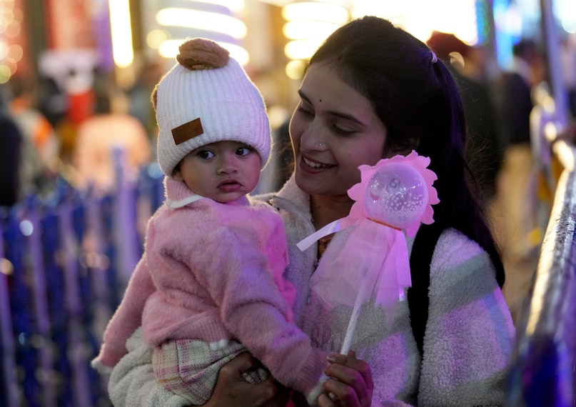 कोलकाता के प्रतिष्ठित पार्क स्ट्रीट पर 31 दिसंबर 2025 की शाम को नए साल के जश्न की धूम रही, जहां रोशनी से नहाई सड़कों पर ‘सिटी ऑफ जॉय’ का उल्लास देखने को मिला. कड़ाके की ठंड के बीच एक महिला अपनी बच्ची के साथ उत्सव का आनंद लेती नजर आई; बच्ची की ऊनी टोपी और हाथ में थमा चमचमाता खिलौना इस खुशी के माहौल में चार चांद लगा रहे थे.
