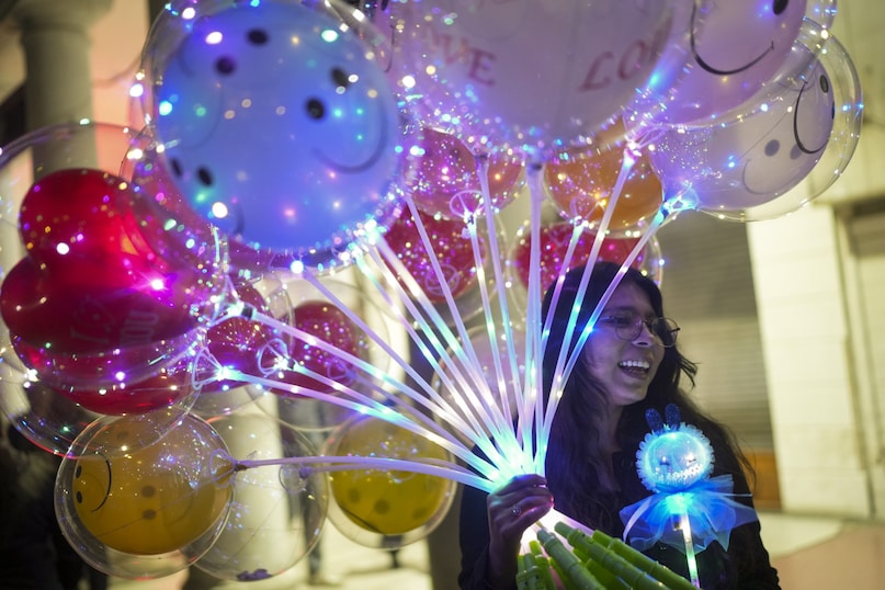 देश की राजधानी दिल्ली के दिल कनॉट प्लेस में 31 दिसंबर 2025 की सर्द शाम को नए साल के जश्न का भव्य नजारा देखने को मिला, जहां लोगों की भारी भीड़ उमड़ी. इस मौके पर हाथों में ‘लव’ लिखे गुलाबी गुब्बारों के साथ युवाओं और परिवारों ने कड़ाके की ठंड के बावजूद नए साल 2026 का गर्मजोशी से स्वागत किया. हंसी-ठिठोली और सेल्फी के दौर के बीच दिल्लीवासियों ने पुरानी यादों को संजोते हुए नई उम्मीदों और मुस्कुराहट के साथ नववर्ष का आगाज किया.