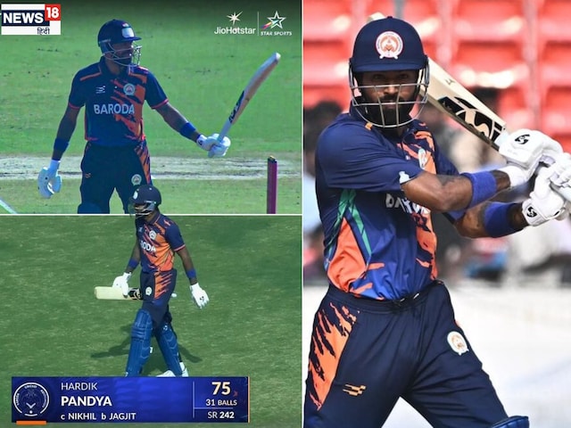 Hardik Pandya Vijay Hazare Trophy 75 runs: 19 गेंद में फिफ्टी, 31 बॉल में 75 रन, हार्दिक पंड्या का रौद्र रूप, नौ छक्के से मैदान दहला दिया