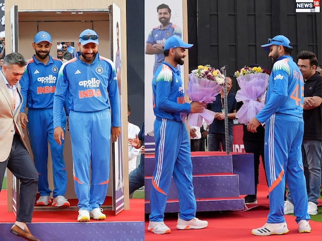 यह छोटा सा समारोह क्रिकेट फैंस के बीच चर्चा का विषय बन गया, क्योंकि इसे बड़े ही अनोखे अंदाज में आयोजित किया गया था. आईसीसी अध्यक्ष जय शाह और बीसीसीआई प्रमुख मिथुन मन्हास की मौजूदगी में बड़ौदा क्रिकेट एसोसिएशन ने एक टेलीफोन बूथ जैसे बॉक्स की व्यवस्था की थी, जिस पर रोहित और विराट की फोटो लगी थीं. मिड-इनिंग्स ब्रेक के दौरान जब उनके नाम लिए गए तो बड़ौदा क्रिकेट एसोसिएशन के प्रेसिडेंट प्रणव अमीन ने उस बॉक्स का दरवाजा खोला और दोनों दिग्गज उसमें से बाहर आए. रोहित और कोहली ने बाहर निकलने के बाद बॉक्स पर लगे अपने फोटो पर अपना ऑटोग्राफ भी दिया. इस दौरान दोनों दिग्गजों को हंसते हुए देखा गया. कई बार सम्मानित हो चुके रोहित और कोहली की हंसी बयां कर रही थी कि यह सम्मान कुछ अनोखा ही था.