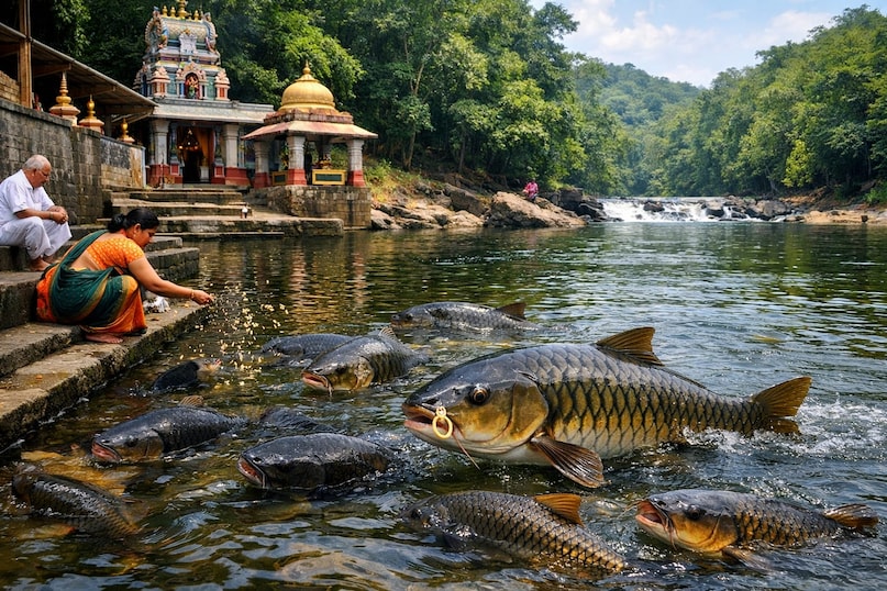 Karnataka Temple Fish: भारत में आस्था और परंपराओं की कोई कमी नहीं है. हर राज्य में ऐसे अनोखे रीति रिवाज देखने को मिलते हैं, जो लोगों को हैरान भी करते हैं और सोचने पर मजबूर भी. कर्नाटक में भी एक ऐसी ही खास परंपरा है, जहां मंदिर में मछलियों की पूजा होती है. इन मछलियों को साधारण जीव नहीं, बल्कि भगवान का रूप माना जाता है. यही नहीं, कुछ जगहों पर इन मछलियों को नथ पहनाकर नदी में छोड़ा जाता है. यह परंपरा केवल धार्मिक नहीं, बल्कि प्रकृति और जीव संरक्षण से भी गहराई से जुडी हुई है. आज के समय में जब पर्यावरण संरक्षण की बातें हर तरफ हो रही हैं, तब कर्नाटक के इस गांव की परंपरा लोगों के लिए एक मिसाल बन चुकी है.