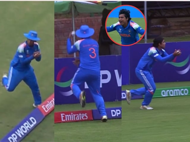 Vaibhav Suryavanshi Catch Viral Video: भारत और बांग्लादेश के बीच अंडर-19 वर्ल्ड कप मैच में वैभव सूर्यवंशी का बल्ला तो बोला ही, लेकिन उनके एक कैच की हर तरफ चर्चा हो रही है. वैभव ने छक्के के लिए जा रही गेंद को अद्भुत तरीके से लपककर हर किसी को हैरान कर दिया. वैभव के इस कैच का वीडियो सोशल मीडिया पर आग की तरह फैला हुआ है.