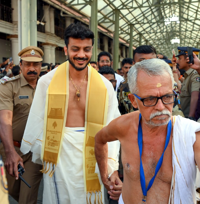 Shri Padmanabhaswamy Temple: मुंडू और पारंपरिक परिधान…केरल के पद्मनाभ मंदिर पहुंची भारतीय टीम, भक्ति में लीन सूर्यकुमार यादव, अक्षर पटेल और रिंकू सिंह
