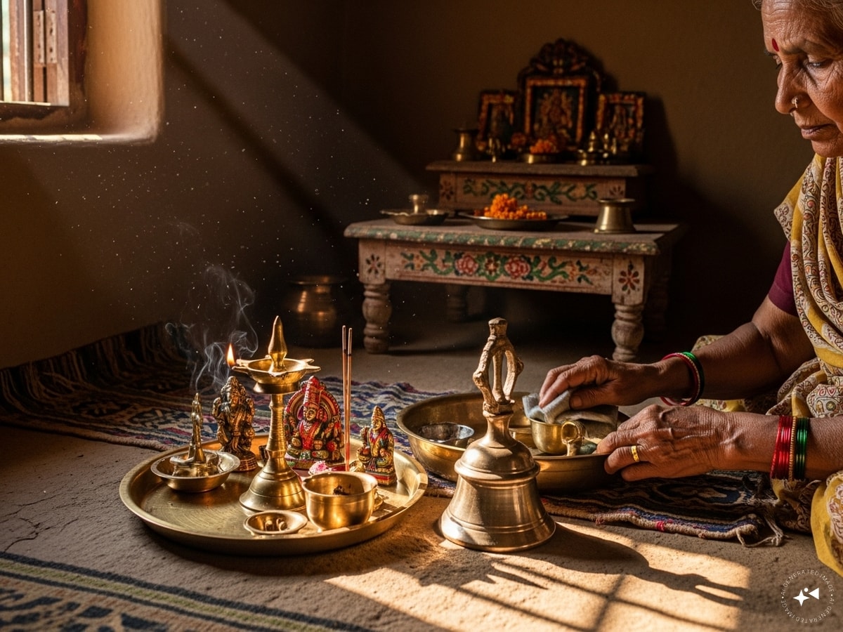 ग्रामीण घरों में आज भी पीतल के बर्तन संभालकर रखे जाते हैं, जिन्हें पीढ़ियों तक पूजा में इस्तेमाल किया जाता है.