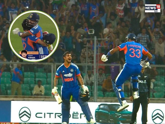 दरअसल, ईशान किशन के पहले शतक के बूते टीम इंडिया ने न्यूजीलैंड के खिलाफ सबसे बड़ा और टी-20 इंटरनेशनल में अपना ओवरऑल तीसरा सबसे बड़ा स्कोर खड़ा किया. टॉस जीतकर पहले बैटिंग करते हुए भारत अगर 271/5 का रिकॉर्ड टोटल बना पाया तो इसमें ईशान किशन की सेंचुरी अहम फैक्टर रही. ऐतिहासिक कमबैक कर रहे ईशान किशन ने 43 गेंद में 103 रन बनाए. 17वें ओवर में जब उन्होंने छक्का मारकर शतक पूरा किया तो हार्दिक पंड्या की खुशी देखते ही बनती थी.
