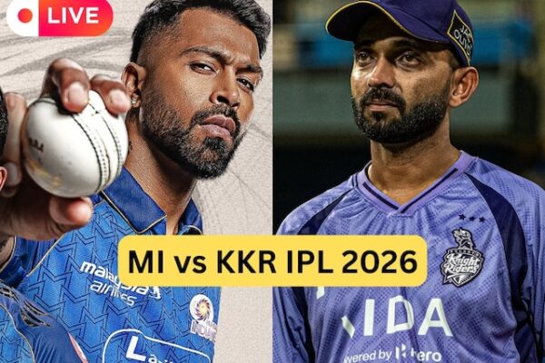 होमखेलक्रिकेट मुंबई इंडियंस बनाम कोलकाता नाइटराइडर्स में घमासान, जीत से शुरुआत पर नजर Last Updated:March 29, 2026, 16:19 IST MI vs KKR Live Score, IPL 2026: मुंबई इंडियंस और कोलकाता नाइटराइडर्स आईपीएल 2026 के दूसरे मैच में आमने सामने हैं. मुंबई के वानखेड़े स्टेडियम में खेले जाने वाले इस मुकाबले में मुंबई इंडियंस की कप्तानी…